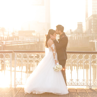 Weer een beetje nerveus vanwege het tijdstip. In december gaat de zon rap onder, maar wat een geluk! Een laagstaand zonnetje over het water zorgt voor zulke romantische plaatjes. Wat zijn we blij met het resultaat die zo goed de liefde van dit stel heeft gevangen.